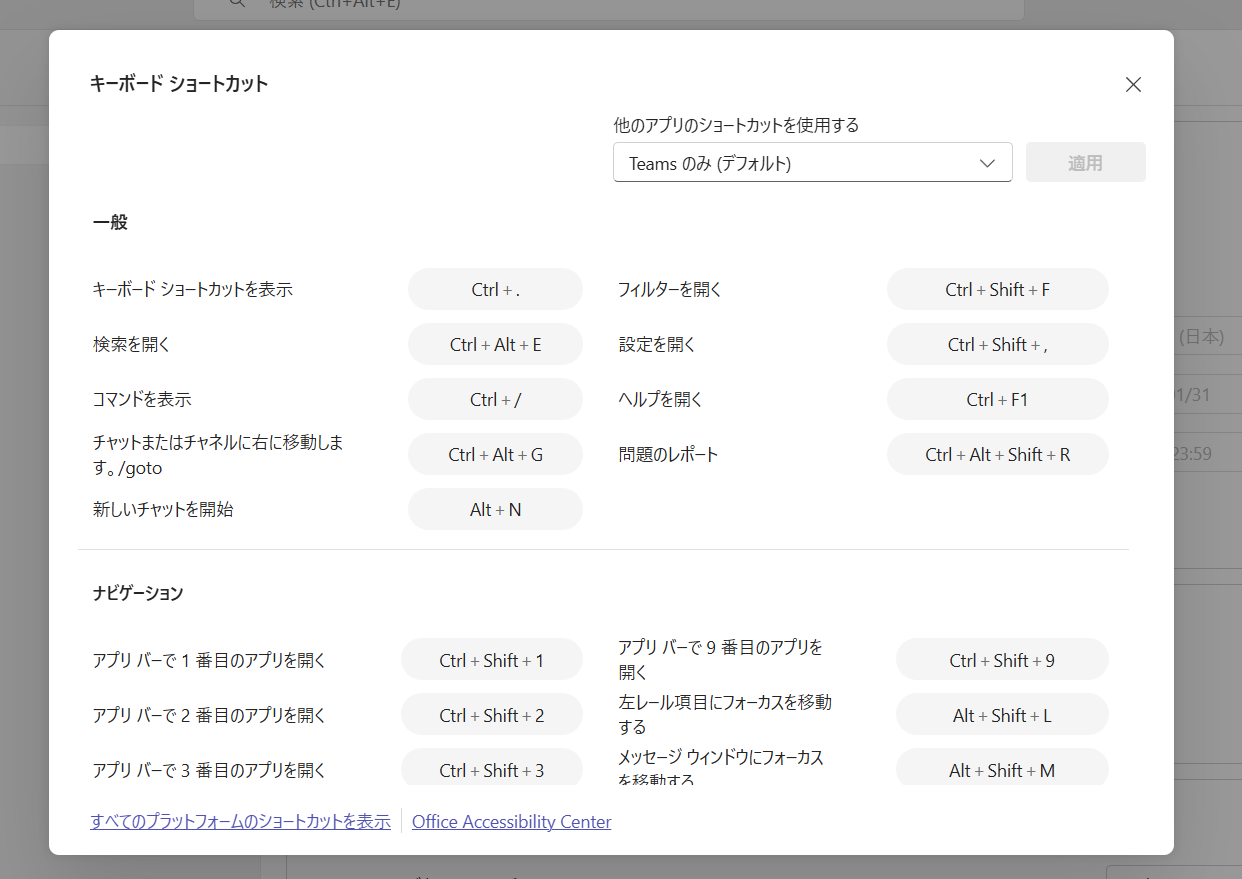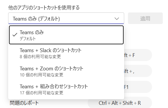 ▼ Microsoft Teams: キーボード ショートカットをカスタマイズする