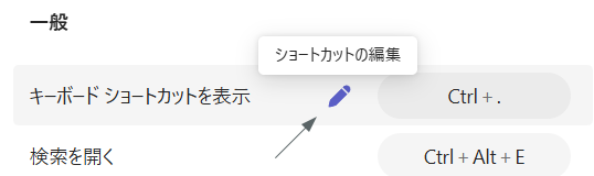 ▼カスタムしたいショートカットにマウスカーソルを当てると、
