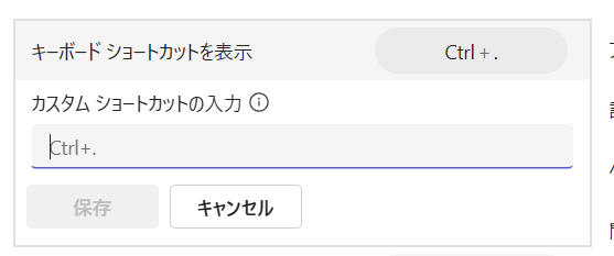 じゃ、例えばそのキーボード ショートカットを表示させるショートカットをカスタムしたい場合。