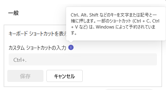 Windows のショートカットキーの一部は予約されていて Microsoft Teams のショートカットキーには割り当てられない事もあります。