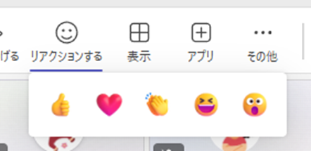 Microsoft Teams の会議では絵文字を使ったリアクションができます。