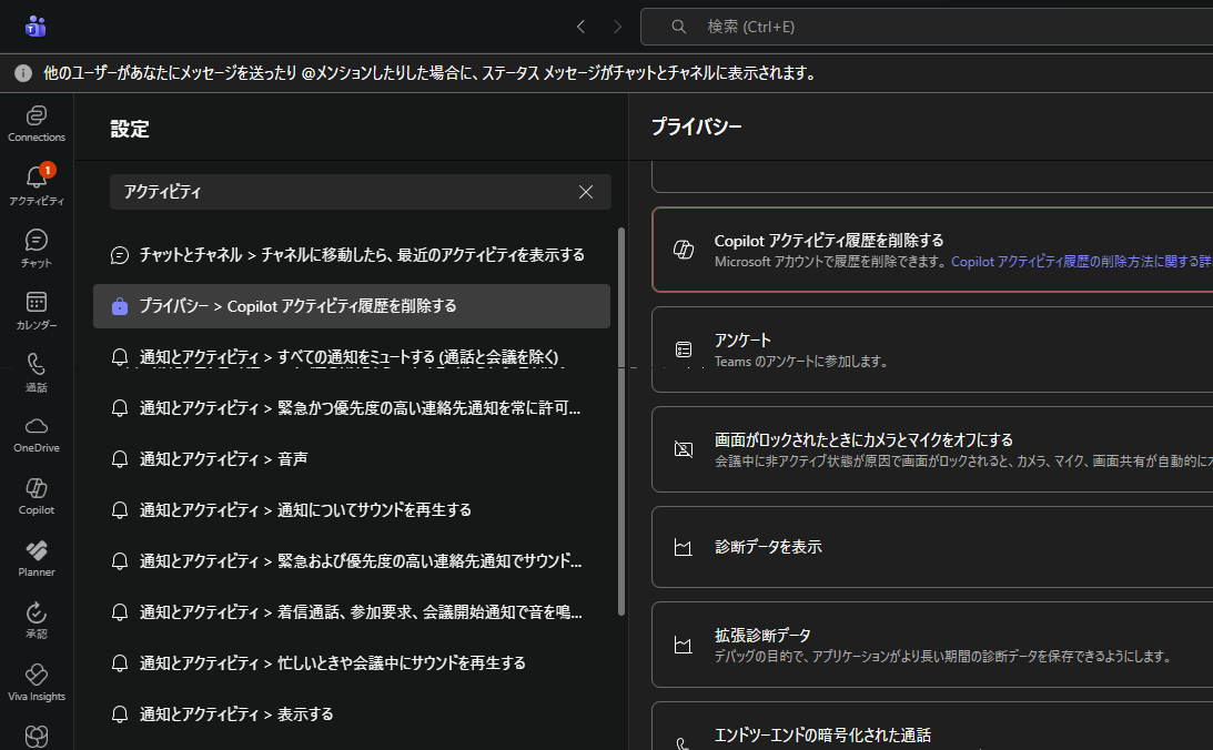 ▼ Microsoft Teams: 設定で検索