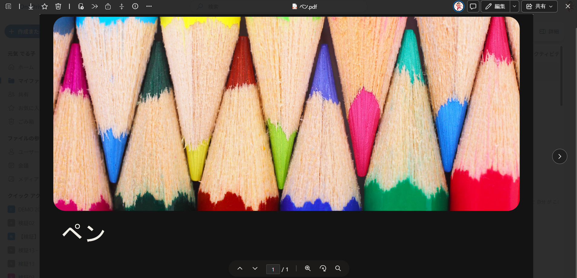 早速 Microsoft 365 内の保存しているPDFファイルをクリックしてPDFファイルビューアーとしてひらきました。