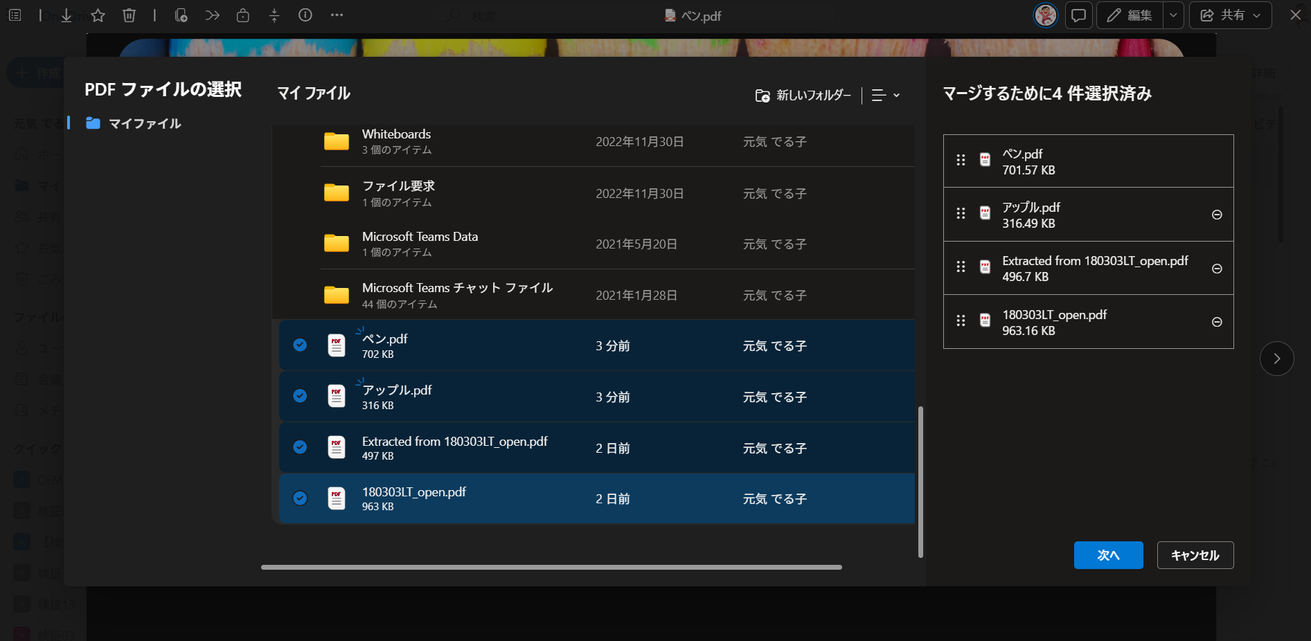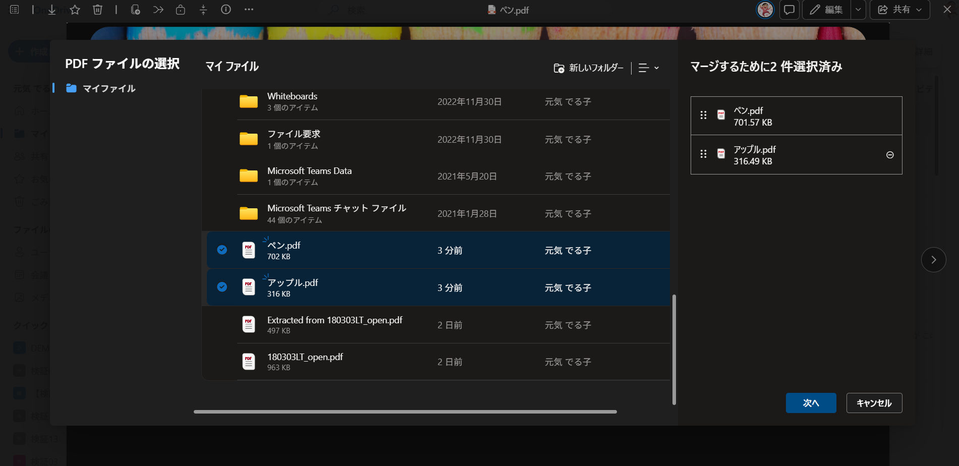 結合したいファイルを全て選択し、並べ替えも終えたら、