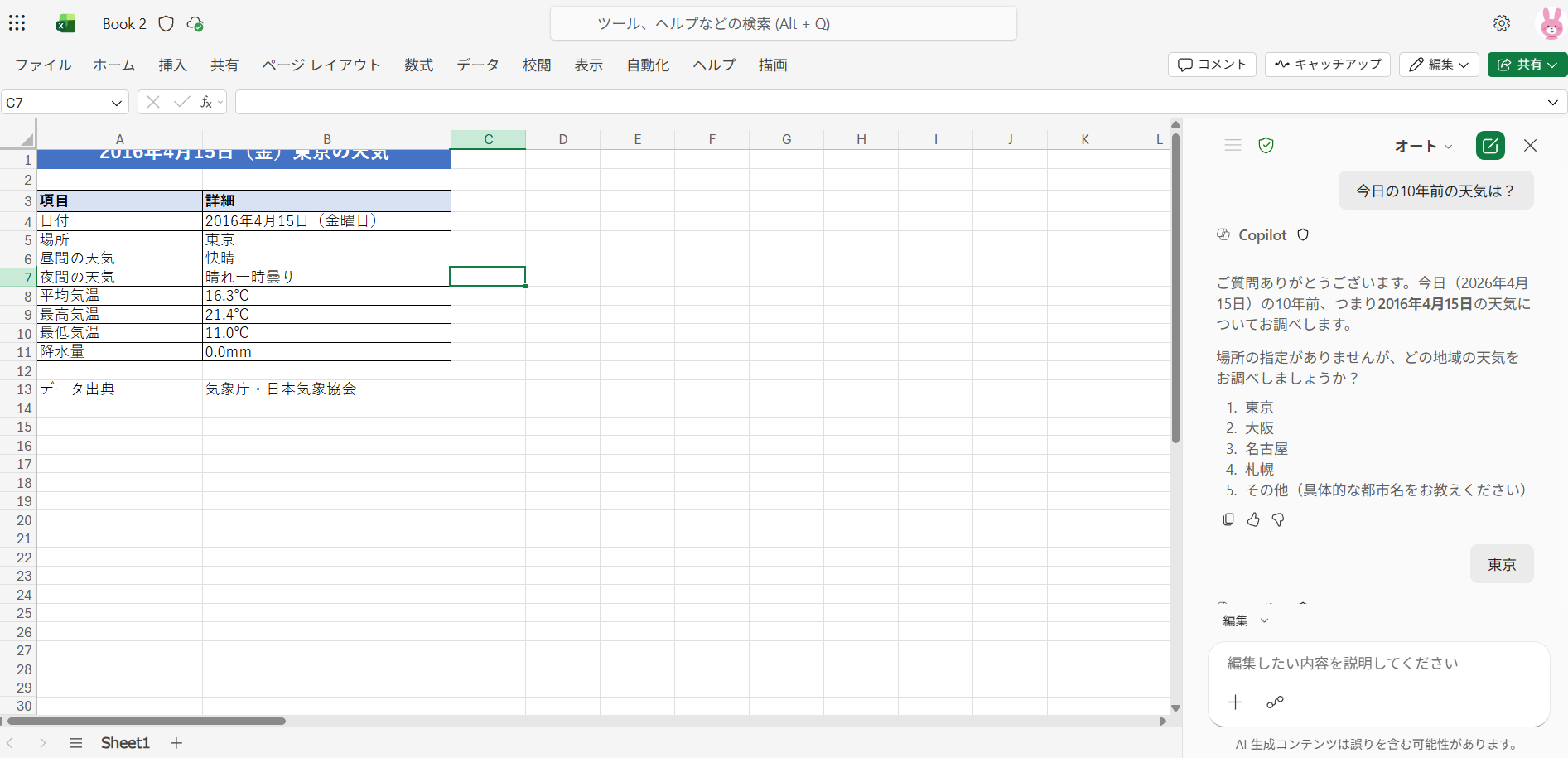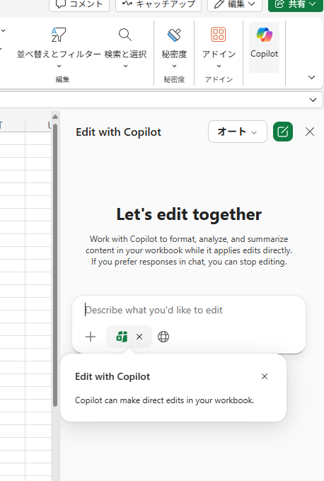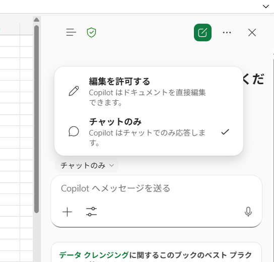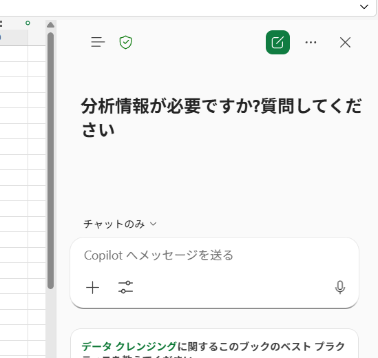 ▼昨日までの Excel の Copilot Chat(このスクショはちょっと古いけどごかんべんを)