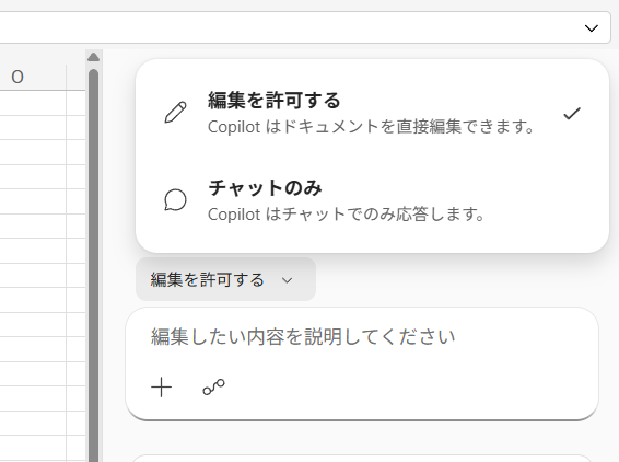 当ブログを購読されている方なら大丈夫だと思いますが、旧称「エージェントモード」は名称変更したんじゃなくて名称がなくなったんです。「エージェントモード」が「 Copilot で編集」英語だと「 Edit with Copilot 」に名称変更されたわけじゃないと過去の記事で書いたと思います。だからこそ今回のUIでは「編集を許可する」英語だと「 Allow editing 」に変わっています。なのでもうエージェントモードはもはや特別な名称はなく、 Excel の Copilot Chat なんです。 Excel の Copilot Chat を中身を直接編集できるのが通常モードで、チャットのみ応答する時は切り替えるというわけですね。