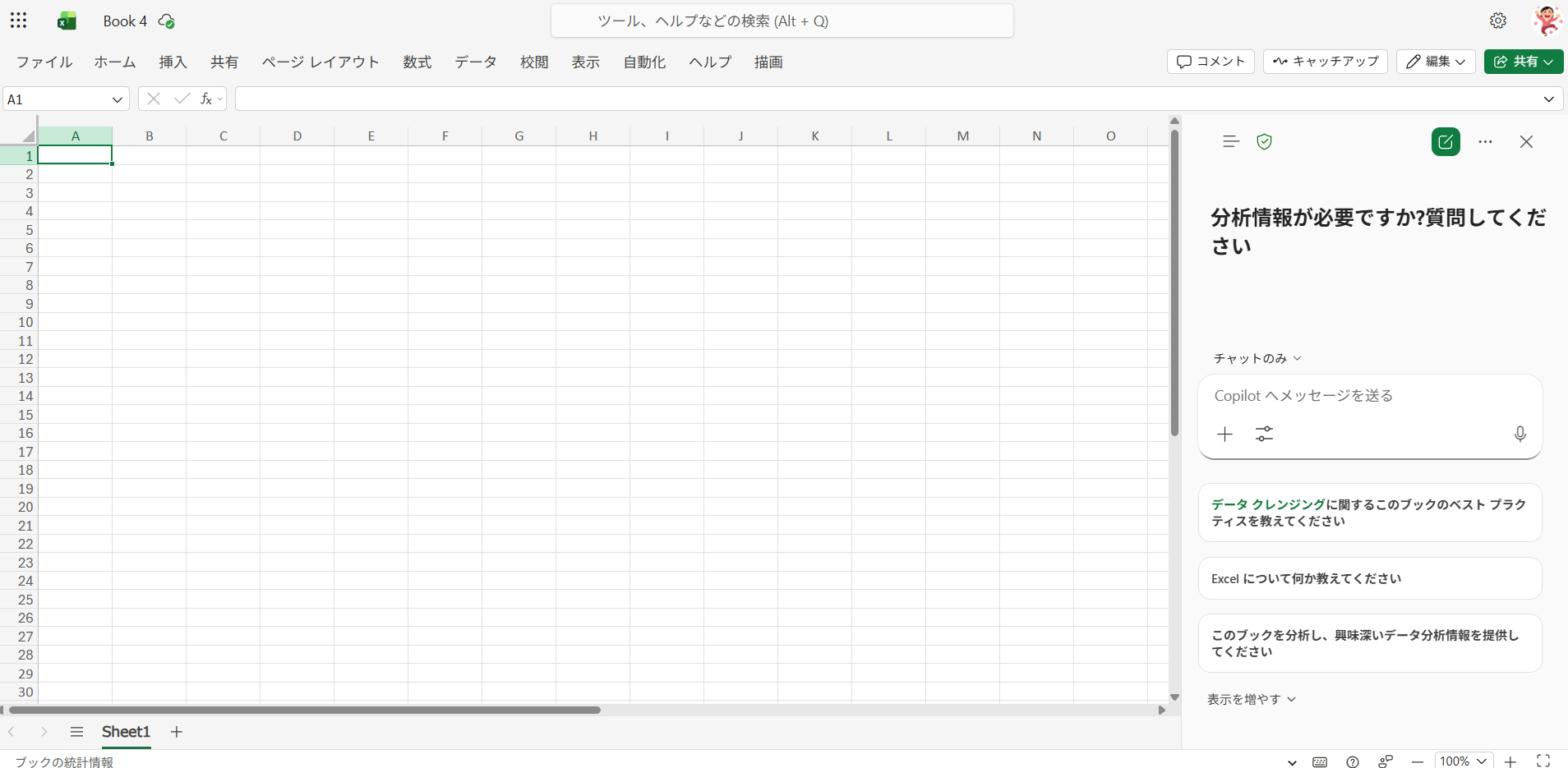 という事で、多くの人が使えている事を願いつつ、今朝、 Excel の Copilot Chat を開いたところ、違和感を覚えました。