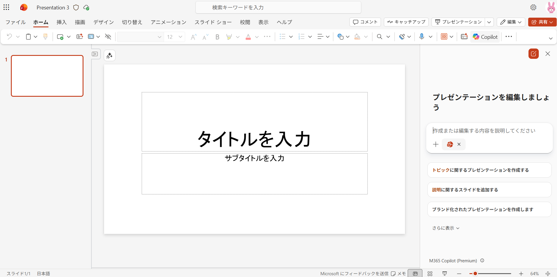 ▼ PowerPoint の Copilot Chat もおな…違うんかい!