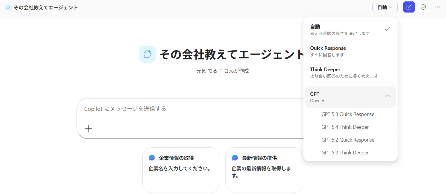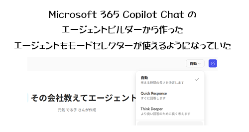そのモードセレクターは、これまでエージェントビルダーから作ったエージェントでは利用できませんでした。それがいつしかシレっと使えるようになっていたんです。