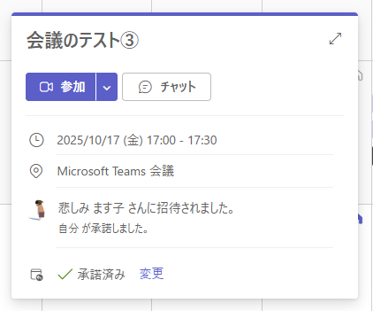 たぶんこれをクリックするとメッセージセンターのメッセージ内のスクショのように複数会議の予定が表示されてどれか選択する形になるかと思います。