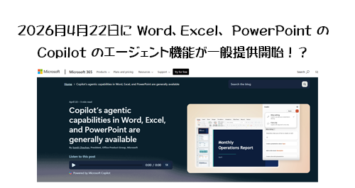 “2026月4月22日に Word、Excel、 PowerPoint の Copilot のエージェント機能が一般提供開始!?” の続きを読む