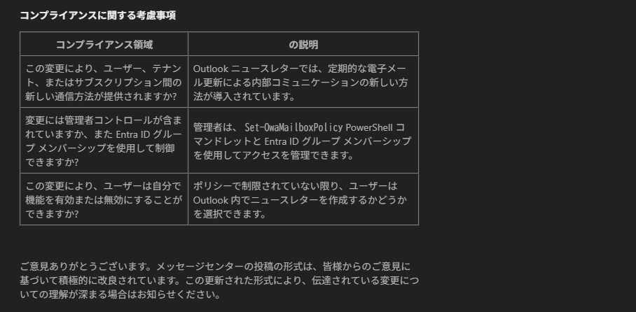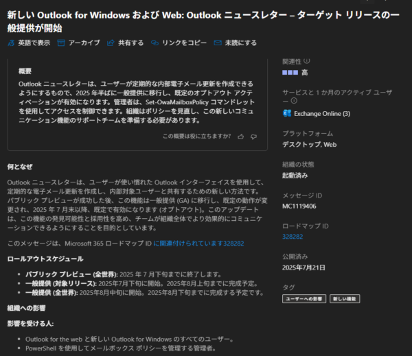 2025/02/19 付けで Microsoft 365 管理センターのメッセージセンターに、以下のメッセージが公開されました。