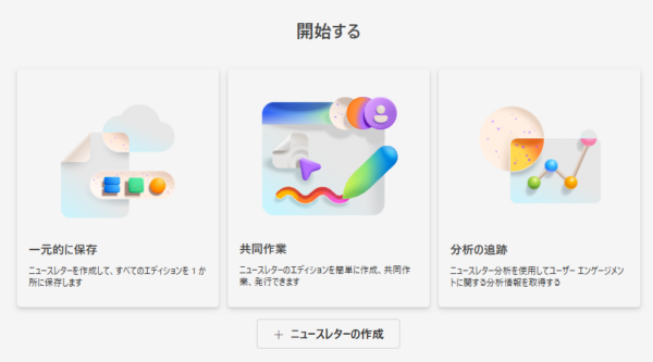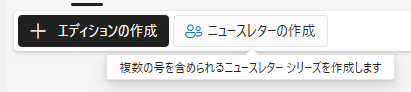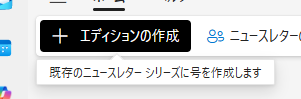 うんうん…イマイチよくわからん。しかしエディションの方は「既存のニュースレターシリーズに号を作成します」という説明なので、これはおそらく最初に作るものではなさそうだなと。何やらニュースレターはシリーズモノとして定期的に発信できそうで、シリーズ2号以降を作る時は「エディションの作成」から作るんだろうなと。メインエリアを見ても、