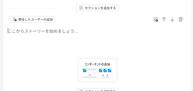 この中にテキストを入力してテキストに装飾したりもできますが、気になるのが未入力時に下に表示される「コンポーネントの追加」。