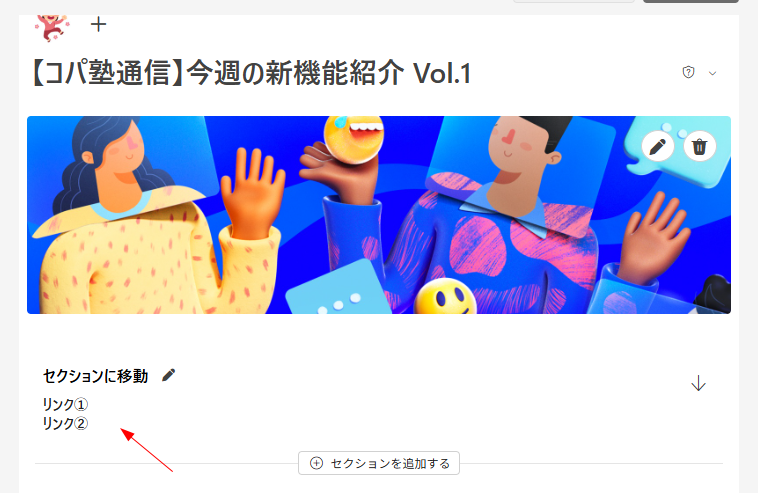 とりあえず触っていくと SharePoint ニュース・ページと同じく「セクション」という大枠を追加してレイアウトを作っていく感じです。