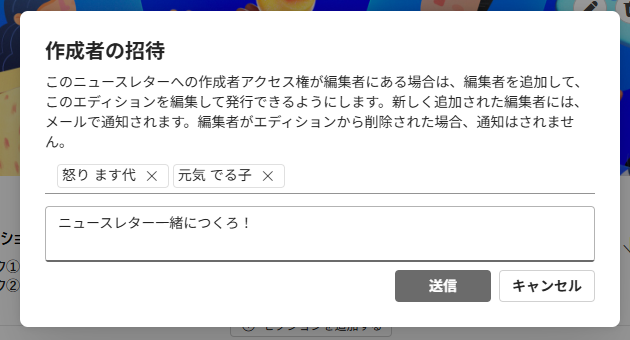おそらくニュースレターを共同編集できるんじゃないかと思います。
