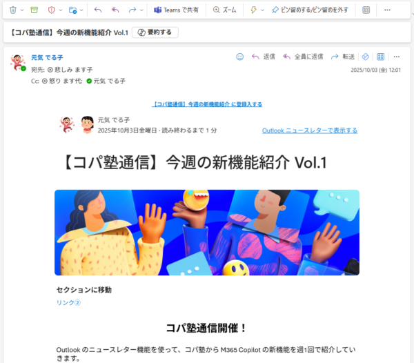 ▼(更新)新しい Outlook for Windows および Web: Outlook ニュースレター