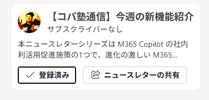 ということで、定期発信するメルマガ的な機能ですかね。結局、 SharePoint ニュース(メール送信もできる)があるのに?という感じですが、色々な手段で「情報を伝える」という目的を達成できる事と、例えば SharePoint が使えない環境もあるだろうし、まぁ目的達成の手段の一つとして検討してみても良さそうですね。 Microsoft Teams がこれだけ利用されていてもまだまだ社内コミュニケーションもメールでやっている会社も多いので。