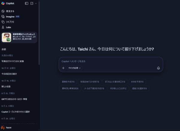 業務利用となるとまた色々とハードルが高そうですけどね。僕みたいに在宅勤務で自宅に静かな仕事部屋がある人は良いですけど、狭い日本ではオフィスも隣の人との距離も近いですよね。そんな状態で大勢がPCに向かって「Hey! Copilot! 」で話しかけてもね。たぶんウルサイだの迷惑だの色々と厳しいんじゃないかと思います。とはいえ、10年前20年前に見たSF映画の自宅に帰るとAIに話しかけて何でも操作してくれる時代がそこまで来ていますよね。いや、すでにスマートデバイスで実現できていますよね。そして Copilot のボイスチャットでは、普通に会話ができちゃうんです。ワクワクする反面、1年後や半年後も読めなくなって不安もありますね。