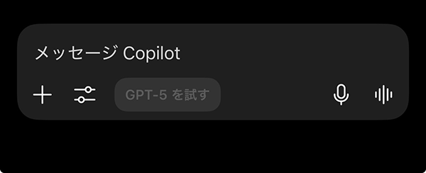 ▼ Microsoft 365 Copilot モバイルアプリのメッセージ入力部分