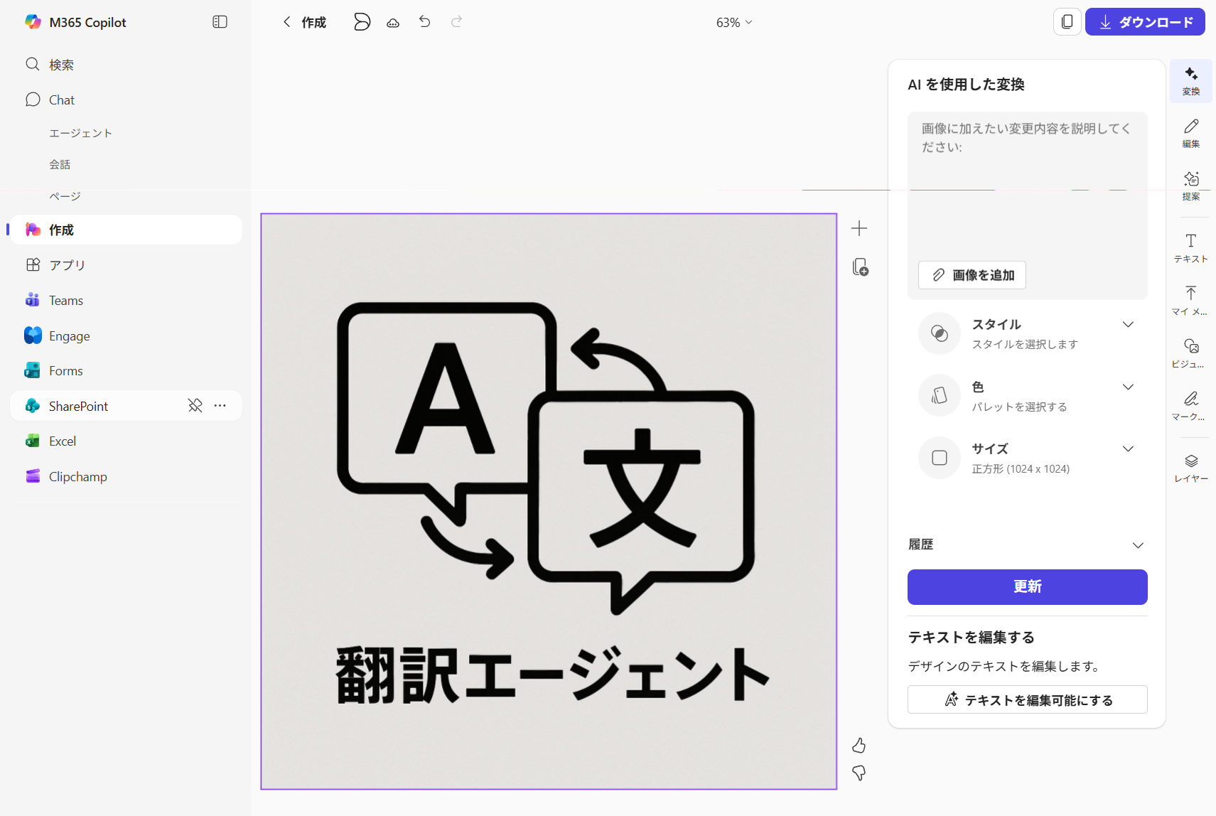 これいつの間にか作ってくれた画像を人間側で編集する事もできるようになっていましたね。例えば生成された画像は概ね気に入ったけど中のテキストの一部だけ変更してほしい場合、そんなのは Copilot にお願いしなくても自分の手でサクっと直したいですよね。そういう事ができるんです。イイですね。