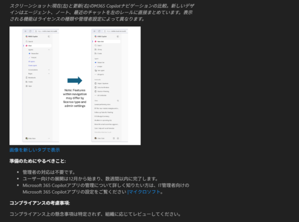 ▼ Microsoft 365 Copilot:M365 Copilotアプリでのナビゲーション刷新