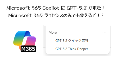とりあえず今日は何度かGPT-5.2が使えるかを確認していましたが、僕の M365 Copilot を持っている数ユーザーの中で、夕方頃から少し使えるようになっていました。