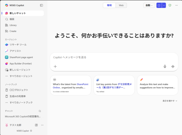 という事で、上でリンク貼ったスパ太郎さんの記事の中では M365 Copilot ライセンスのユーザーが対象みたいな事が記載されていたけど、実際今上のスクショのように使えています。わからないですけどね。明日確認したら消えている可能性もあるし。ただ現時点では使えていました。