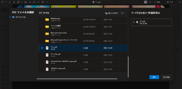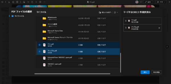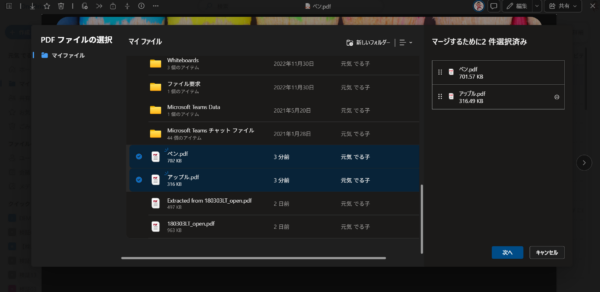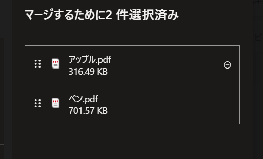 結合したいファイルを全て選択し、並べ替えも終えたら、