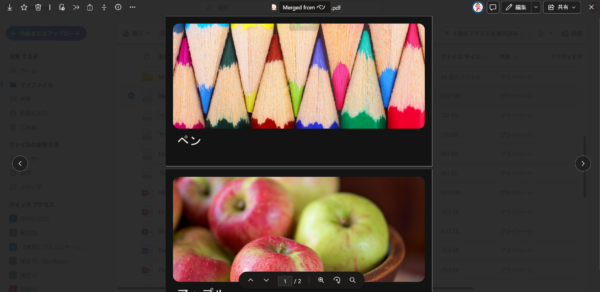 という事で複数PDFファイルをPDFファイルビューアー上から離れずに結合して新規PDFファイルが作れるのは便利ですね。ただ僕が試した限りだとPDFファイルのページとページの間に他のPDFファイルのページを挿入とか、複数PDFファイルのページを並べ替えるみたいな事はできなさそうでした。あくまでもファイルとファイルの結合でした。