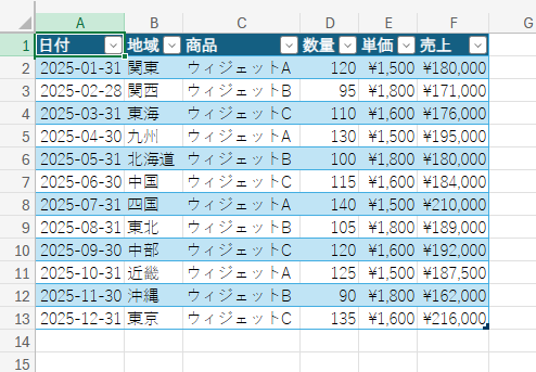 では Excel のエージェントモードを触ってみます。