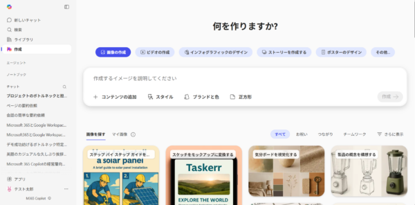 2025年11月に Microsoft 365 ライセンスのみのユーザーでも Copilot Create から画像・動画の生成が利用可能になったんですよね。