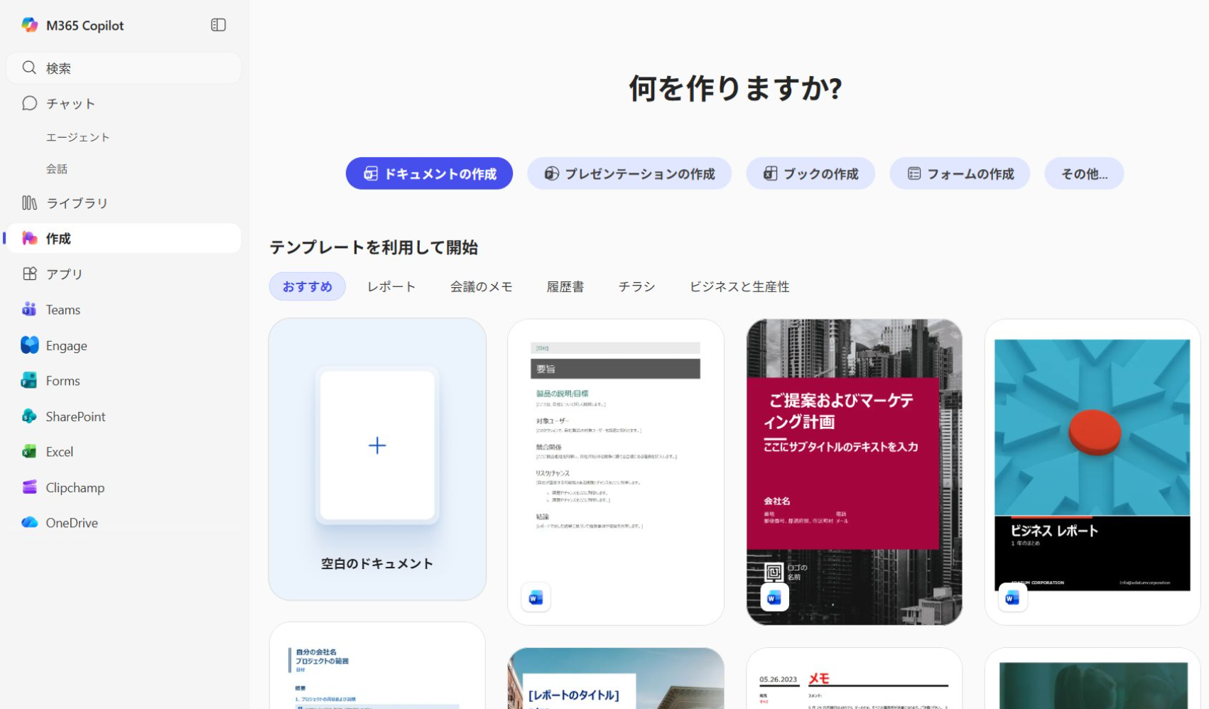 ▼ Microsoft 365 Copilot の左ナビゲーション