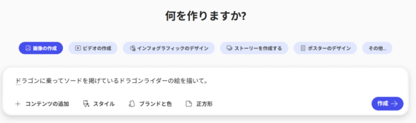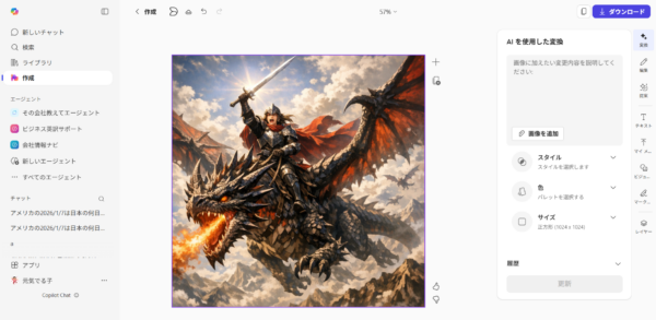 左下に「 Copilot Chat 」って表示されている場合は Microsoft 365 Copilot がないユーザーの場合の表示ですね。現時点ではそのユーザーであっても「画像の作成」「ビデオの作成」が復活しました。