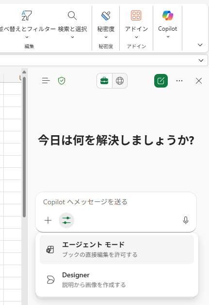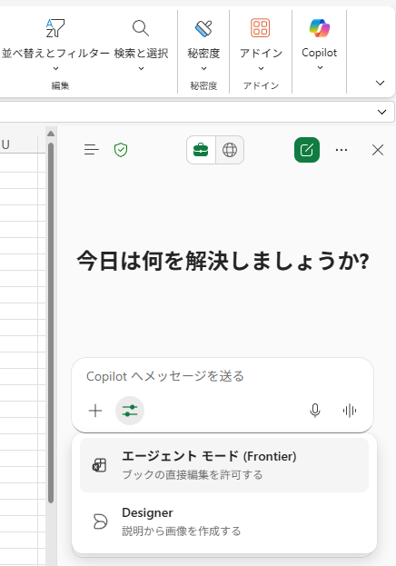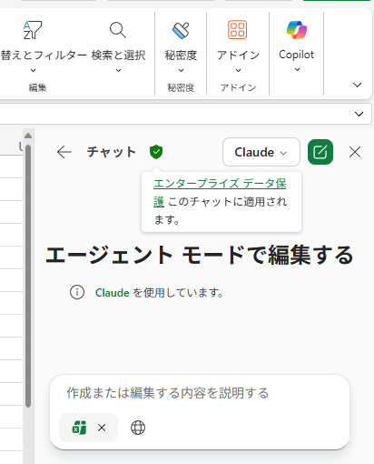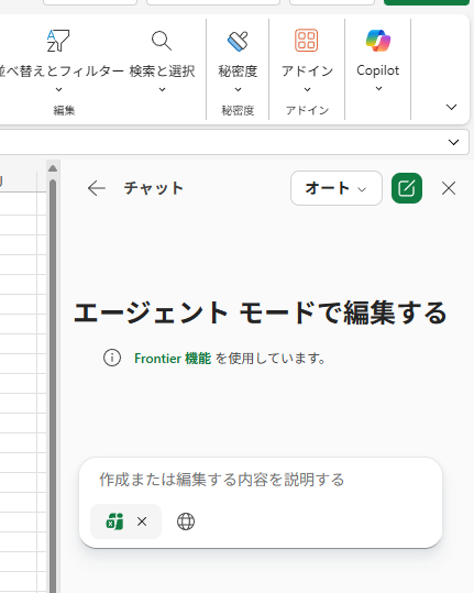 ▼ Excel のエージェントモード