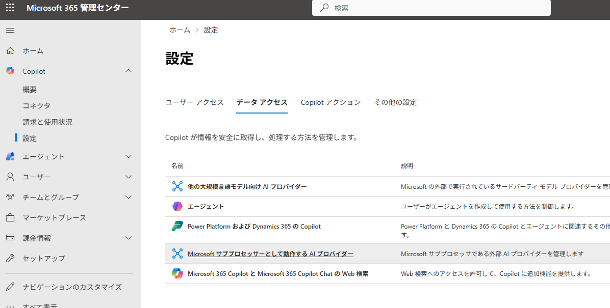 ■「Microsoft サブプロセッサーとして動作する AI プロバイダー」という設定項目の謎