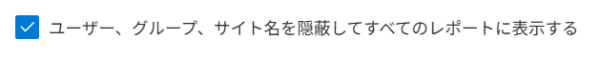 「ユーザー、グループ、サイト名を隠蔽してすべてのレポートに表示する」