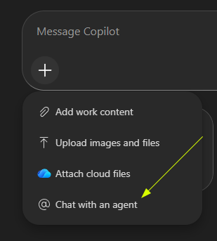 メニュー内に埋もれていた機能を切り出すという事、言い換えると「+」配下にあった言わば第二階層のメニューを「+」と同列の第一階層に昇格させたという事。それだけでも「ツール(つまりエージェントを呼び出す)」の認知度を向上させて利用率をアップさせる目的があるのではと推測できます。上の見比べのスクリーンショットを良く見ると気が付くけど、どちらもこの時点でメッセージ欄に「@」が追加されているんですよね。これらのメニューから呼び出さずともエージェントは@メンションで呼び出すこともできるので。エージェントを@メンションで呼び出せるっていうのは、去年の Microsoft Ignite 2025 で発表された「 Agent 365 」にもつながる思想なのかなとは思います。エージェントもユーザー扱い、人扱いする感覚。 Microsoft Teams で社内の有識者や仲間に@メンション付けてチャットで質問するような感覚で、エージェントを@メンションで呼び出す感覚。
