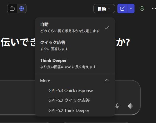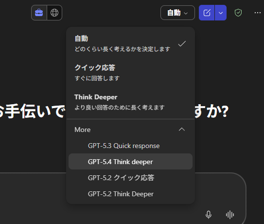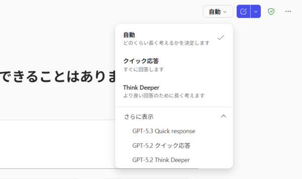 これまで新しいモデルが出ると「クイック応答」と「 Think Deeper 」の2つが出ているので、 GPT-5.3 も Instant は Quick response(クイック応答)という名前で追加されていたから、 GPT-5.3 Think Deeper がそのうち追加されるのかな?なんて思いながらこの記事を書いていましたが…、すでに GPT-5.4 が発表されるぞ!なんていう話もあって…。そしてたった2日後の3月5日に GPT-5.4 が登場しました。