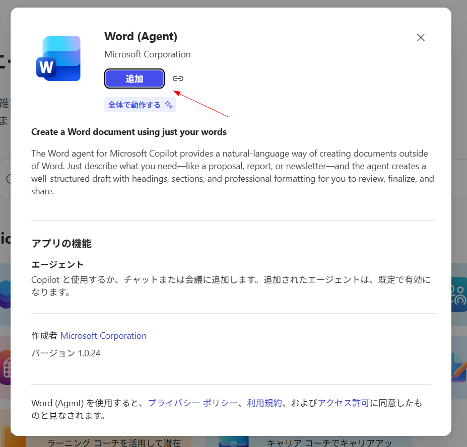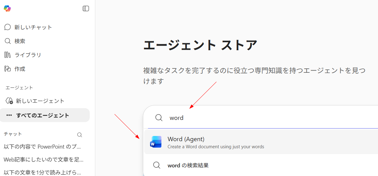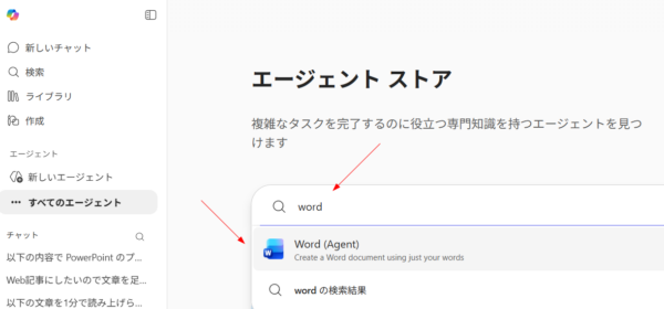 すると「 Word (Agent)」が出てきました。クリックすると、
