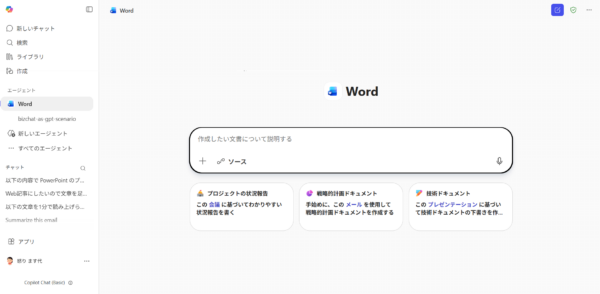 ということで、 Copilot Chat (Basic) ユーザーでも Word エージェントがヌルっと使えるようになっていました。他にも、