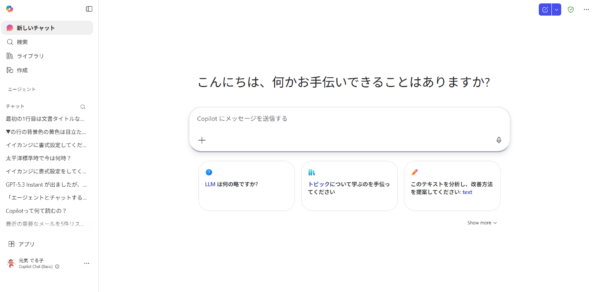 チャット履歴を折りたたんで隠すことができました。やっと一つの不満が解消されました。でも、今のところは M365 Copilot (Premium) ユーザーのみで、 M365 Copilot (Basic)および Copilot Chat (Basic)ラベルのついたユーザーは僕の確認する限りは折りたためないようです。そのうちどのユーザーでも折りたためるようになると良いんですけどね。