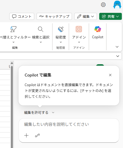 機能面だけで言えば、 Word / Excel / PowerPoint の Copilot を開くと、既定で内容を直接編集してくれるように、どのユーザーでも(残念ながらそもそも使えない Copilot Chat (Basic)ユーザーは対象外)なった事が一般提供開始という事。
